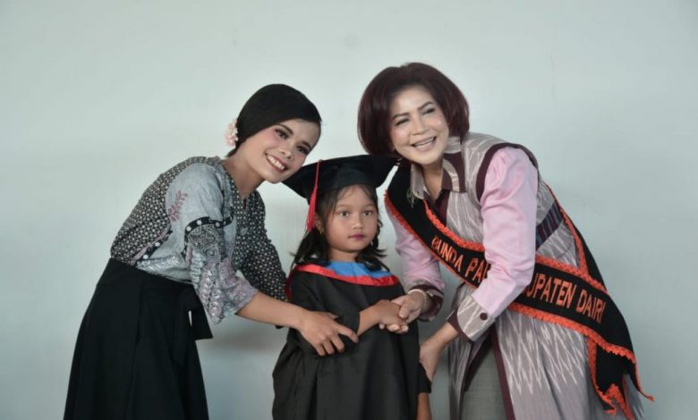 SINDEKA.id – Bunda Paud Kabupaten Dairi Ny. Romy Mariani Eddy Berutu menghadiri pelepasan Paud se-Kecamatan Pegagan Hilir, Sabtu (11/6/2022) di Sopo Godang HKBP Tigabaru. Turut hadir dalam pelepasan paud yang berjumlah 208 anak Paud, turut dihadiri oleh Camat Pegagan Hilir Abdimar Tamba, Kepala Bidang Paud Marina Sinaga, Bunda Paud Kecamatan Pegagan Hilir, Bunda Paud Desa serta Kepala Desa se-Kecamatan Pegagan Hilir.