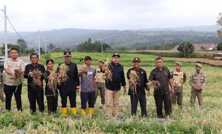 SINDEKA.id – Bupati Pakpak Bharat, Franc Bernhard Tumanggor mengikuti Panen Perdana Bawang Merah milik petani (Anto Cibro) di Desa Traju, Kecamatan Siempat Rube, Kamis (14/9/2023).