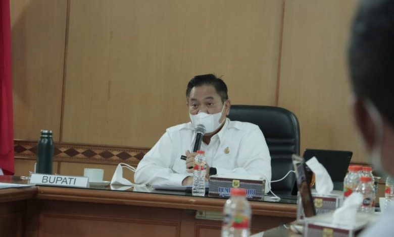 SINDEKA.id – Bupati Dairi Dr. Eddy Keleng Ate Berutu menegaskan bahwa seluruh OPD Harus Jadi Tim Solid. Hal itu diungkapkan saat bupati memimpin rapat evaluasi pelaksanaan program dan kegiatan prioritas Tahun 2021 serta rencana pelaksanaan program dan kegiatan prioritas Tahun 2022 bersama Pj.Sekdakab Budianta Pinem, para asisten dan seluruh pimpinan Organisasi Perangkat Daerah (OPD) di ruang rapat bupati, Kamis (13/01/2022).