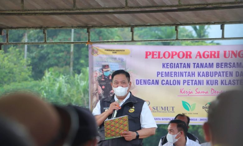 Bupati dalam sambutannya, mengatakan kegiatan tanam perdana dilaksanakan Dinas Pertanian Ketahahan Pangan bekerja sama dengan PT Bank Sumut, Pos Perjuangan Rakyat (Pospera), PT Dairi Agro Sejahtera (DAS), PT Wahana dan CV Dairi Agri Firm (DAF).