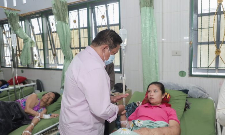 SINDEKA.id – Bupati Dairi Eddy Berutu didampingi Ketua Yayasan Kanker Indonesia Cabang Dairi Romy Mariani Simarmata Ny. Eddy Berutu mendoakan Widia Oktavia Sibarani, warga penderita tumor jinak, dari Desa Kaban Julu di RSUD Sidikalang, Sabtu (15/7/2023).
