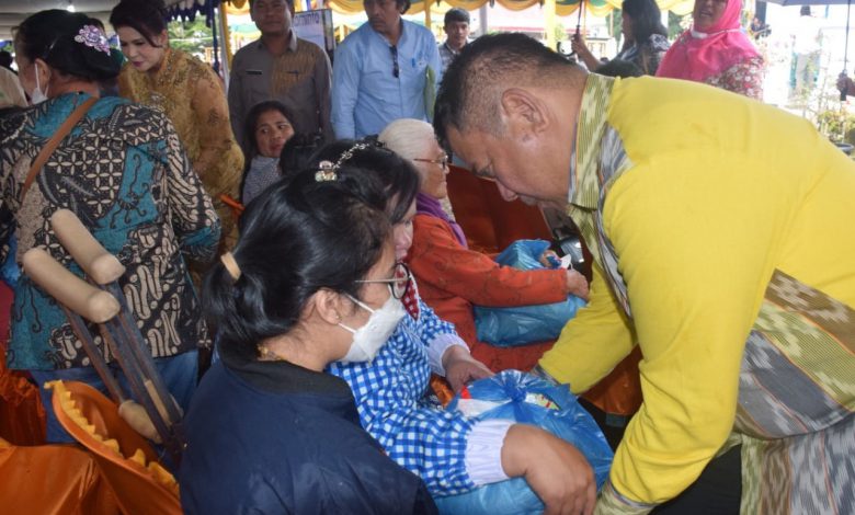 SINDEKA.id – Bupati Dairi Dr Eddy Keleng Ate Berutu didampingi Ketua Tim Penggerak PKK Dairi Romy Mariani, Kepala Dinas Sosial Anggara Sinurat membagikan bantuan sembako kepada warga penyandang disabilitas.