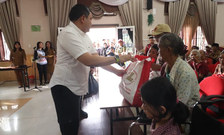Bupati Franc Bernhard Tumanggor Bagikan Paket Bantuan Sembako Dari Presiden RI Bagi PPKS se Kabupaten Pakpak Bharat