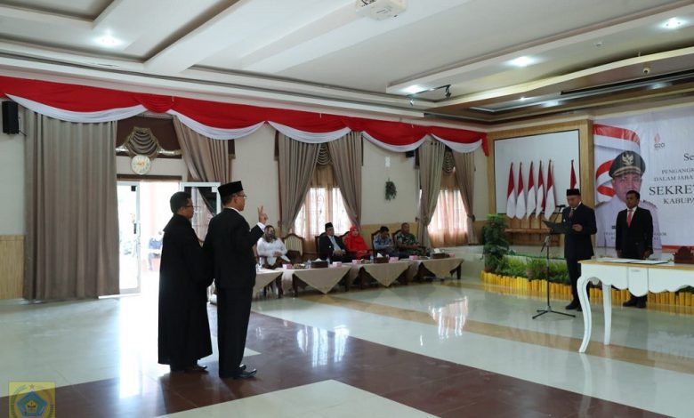 Saya sampaikan kepada seluruh Pimpinan Organisasi Perangkat Daerah dan seluruh Aparatur Sipil Negara, hargai dan hormati Sekretaris Daerah kita ini, koordinasikan seluruh kegiatan da kebijakan yang akan kita laksanakan, koordinasikan seluruh permasalahan dalam Pemerintah ini, pesan Bupati kemudian.