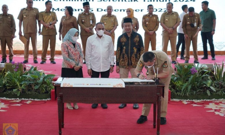 SINDEKA.id – Franc Bernhard Tumanggor, Bupati Pakpak Bharat menandatangani pakta integritas netralitas Aparatur Sipil Negara dalam menghadapi pemilihan Umum serentak tahun 2024, di aula Tengku Tengku Rizal Nurdin, Medan (05/12/2022).