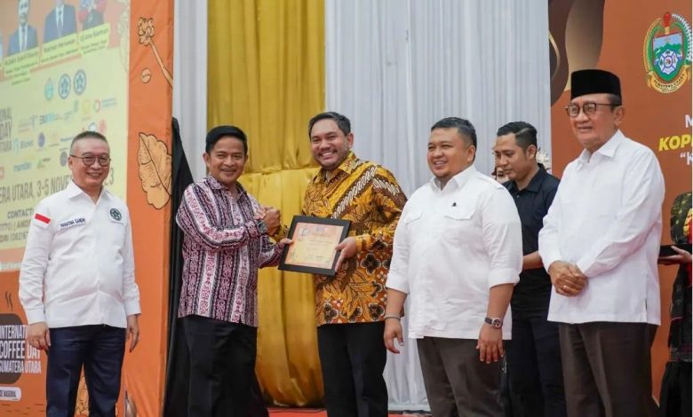 SINDEKA.id – Bupati Pakpak Bharat, Franc Bernhard Tumanggor menerima Piagam Penghargaan atas kontribusi dalam upaya pengembangan kopi arabika di Kabupaten Pakpak Bharat. Piagam Penghargaan ini diserahkan oleh Penjabat Gubernur Sumatera Utara, Hassanudin dalam acara Pembukaan Peringatan Hari Kopi Dunia/International Coffee Day (ICD) ke-9 Tahun 2023 di Area Pekan Raya Sumatera Utara, Medan, Jumat (03/11/2023).