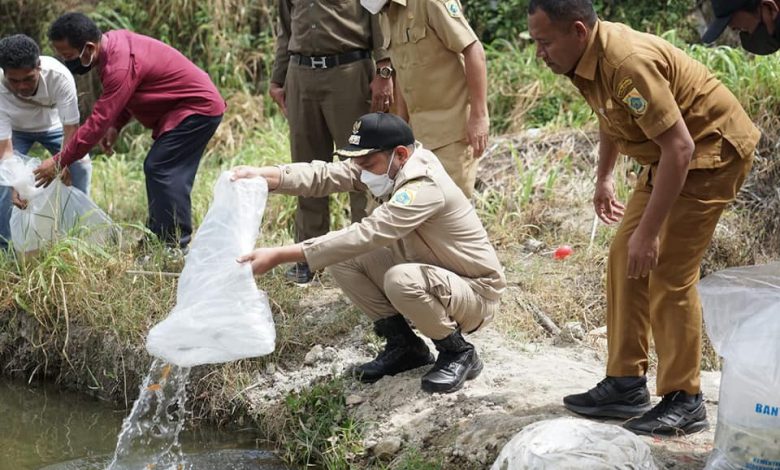 Bupati Pakpak Bharat Tabur Benih Ikan Di Desa Pardomuan