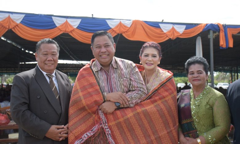 SINDEKA.id – Bupati Dairi Eddy Berutu bersama Ketua TP PKK Romy Mariani Simarmata- Ny.Eddy Berutu Romy Mariani Simarmata menghadiri peresmian persiapan resort Gereja HKBP Sitinjo, Minggu (4/6/2023).