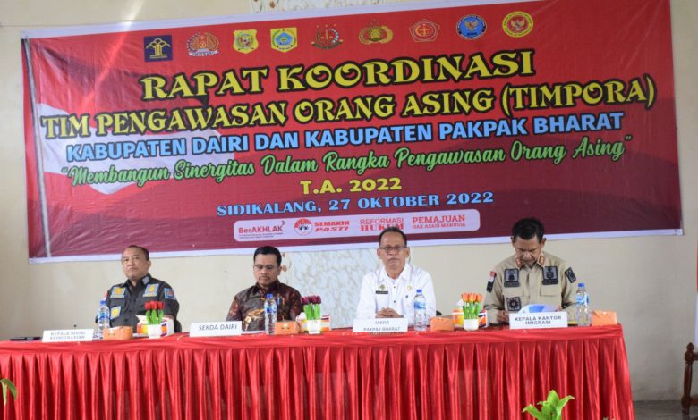 Rakor yang dilaksanakan Kantor Imigrasi Kelas II TPI Pematang Siantar, mengambil thema membangun sinergitas dalam pengawasan orang asing ini dihadiri sekda Pakpak Bharat Jalan Berutu, Kepala Divisi Keimigrasian Kemenkumham Sumut, Ignatius Purwanto, Kepala Kantor Imigrasi Pematang Siantar, Mulyadi, unsur forkopimda kedua kabupaten, camat serta undangan lainnya.