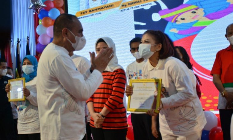 Gubernur Edy juga menyerahkan Piagam Penghargaan kepada 21 Kabupaten/Kota Layak Anak dari Kementerian Pemberdayaan Perempuan dan Perlindungan Anak (PPPA) untuk kategori Pratama dan Madya. Untuk kategori Madya, Kabupaten Dairi kembali meraih penghargaan tersebut untuk yang ke dua kalinya. Penghargaan tersebut diterima langsung oleh Ketua Tim Penggerak PKK Kabupaten Dairi Ny Romy Mariani Eddy Berutu.