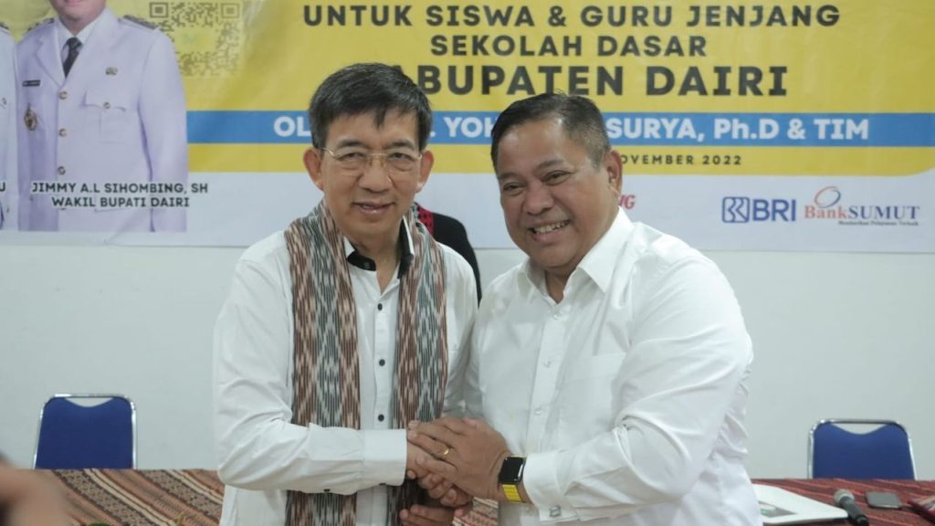 SINDEKA.id – Profesor Yohanes Surya, pencipta metode berhitung Gampang Asik dan Menyenangkan (Gasing) memuji inisiatif yang dilakukan Bupati Dairi, Dr. Eddy Keleng Ate Berutu menghadirkan metode yang diciptakannya tersebut untuk para pelajar di Kabupaten Dairi.