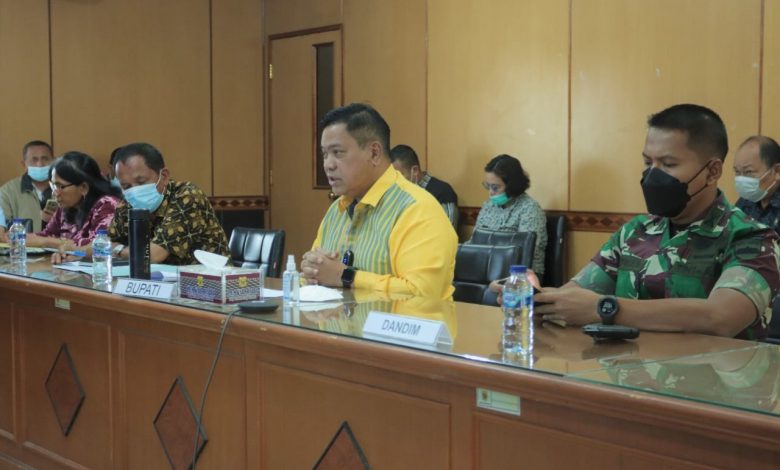 Sidikalang, Bupati Dairi Dr Eddy Keleng Ate Berutu mengikuti rapat video comference dengan Kementerian Koordinator Bidang Kemaritiman dan Investasi (Kemenkomarves) di Kantor Bupati Dairi, Kamis (27/1/2022).