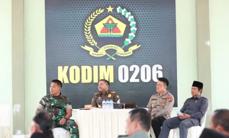 SINDEKA.id – Bupati Pakpak Bharat, Franc Bernhard Tumanggor menghadiri Rapat Koordinasi Pelaksanaan Pengadaan Tanah Pembangunan PLTA Kombih III di Aula Kodim 0206/Dairi, Kamis (11/5/2023).