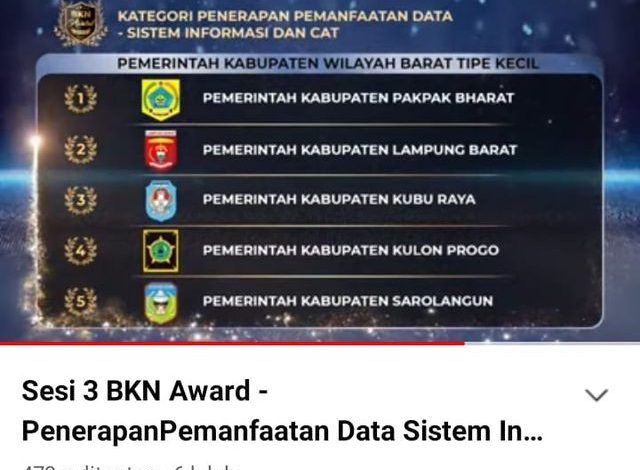 SINDEKA.id – Pemerintah Kabupaten Pakpak Bharat berhasil meraih peringkat I dalam ajang BKN Award 2022. Bersama tiga Kabupaten/Kota lainnya, Pemerintah Kabupaten Pakpak Bharat berhasil menjadi yang terbaik (Peringkat I) untuk Wilayah Barat Tipe Kecil dalam kategori Penerapan Pemanfaatan Data Sistem Informasi CAT. Adapun empat Pemerintah Daerah/Kota yang meraih BKN Award 2022 adalah Pakpak Bharat, Toba, Kota Gunung Sitoli dan Kota Tebing Tinggi.