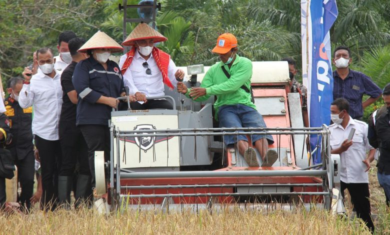 SINDEKA.id – Gubernur Sumatera Utara (Sumut) Edy Rahmayadi bersama anggota Forkopimda melakukan panen raya padi bersama petani Desa Lau Kasumpat, di persawahan Jalan Besar Medan-Kota Cane, Kecamatan Mardinding, Kabupaten Karo, Rabu (16/2). Panen pada areal persawahan seluas 280 hektare tersebut menggunakan tiga jenis varietas padi unggul yakni Mekongga, Inpari 32 dan Ciherang.