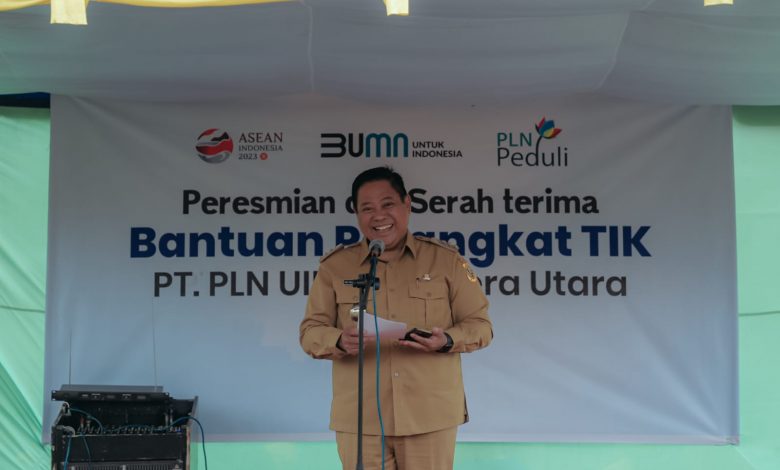 SINDEKA.id – Bupati Dairi Dr.Eddy Keleng Ate Berutu menyampaikan terima kasih kepada PT. PLN (Persero) Unit Induk Distribusi (UID) Sumatera Utara, secara khusus PLN ULP(Unit Layanan Pelanggan) Sidikalang, yang turut ambil bagian dalam mencerdaskan bangsa melalui pemberian bantuan peralatan Teknologi Informasi Komunikasi (TIK) berupa perangkat komputer dan komunikasi kepada SMP Muhammadyah 51 Sidikalang, Selasa (24/10/2023) di halaman SMP 51 Muhammadyah.