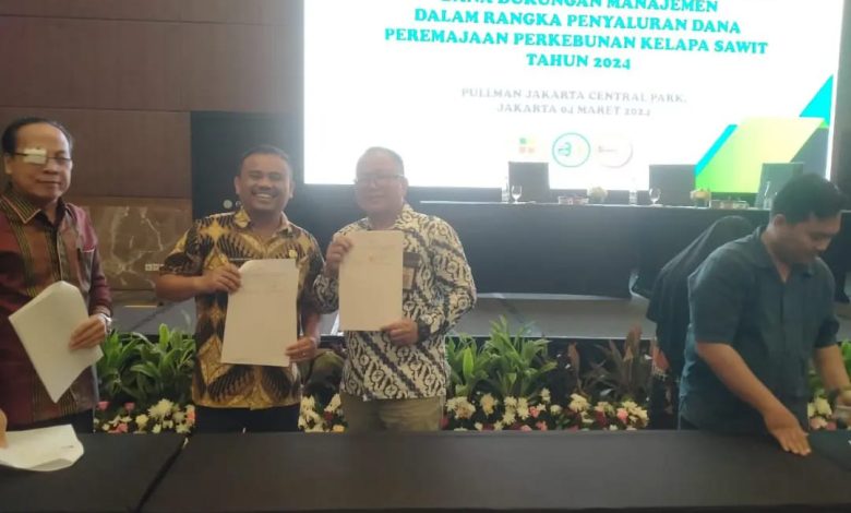SINDEKA.id – Plt. Kepala Dinas Ketahanan Pangan dan Pertanian Kabupaten Pakpak Bharat, Adei Johan Banurea, SP, MM menandatangani Perjanjian Kerja Sama Tentang Peremajaan Sawit Rakyat (PSR) bersama Togu Rudianto Saragih, SH, MH selaku Ketua Sekretariat Tim Peremajaan Sawit Rakyat pada Dirjen Perkebunan Kementerian Pertanian RI. Perjanjian Kerja Sama ini dilaksanakan Pullman Jakarta Central Park, Jakarta (04/03/2024).