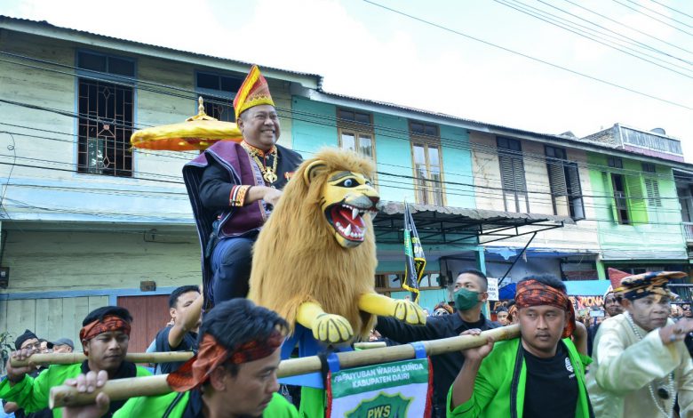 Bupati Dairi Eddy Keleng Ate Berutu dan istri Romy Mariani Eddy Berutu menunggu peserta kirab di depan Gedung Nasional Djauli Manik. Turut mendampingi bupati dan istri adalah Kepala Dinas Kebudayaan dan Pariwisata Provinsi Sumatera Utara Zumi Sulthony, perwakilan Kementerian Pariwisata dan Ekonomi Kreatif RI Joko Suharnowo, Ketua DPRD Dairi Sabam Sibarani, Wakil Ketua DPRD Halvensius Tondang, Wakil Ketua DPRD Wanseptember Situmorang, Dandim 0206/Dairi Letkol Arh Ridwan Sulistyawan, Wakapolres Kompol Denny Boy, Ketua PN Sidikalang Monita Honeisty Sitorus SH MH, dan beberapa pimpinan OPD.