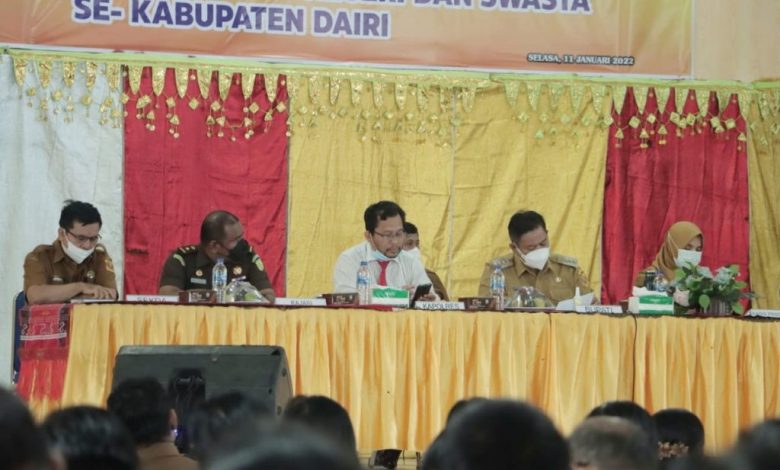 SINDEKA.id – Pemerintah Kabupaten Dairi melalui Dinas Pendidikan mengadakan rapat kerja dengan Kepala Sekolah Dasar (SD) dan Sekolah Menengah Pertama (SMP) Negeri maupun Swasta se-Kabupaten Dairi pada Selasa (11/1/2022) di GOR Sidikalang.