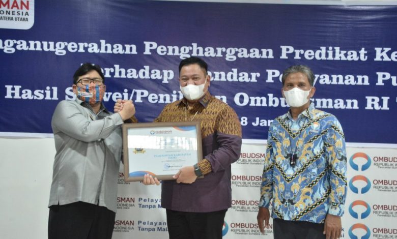 Penghargaan tersebut diperoleh dari Ombudsman perwakilan Provinsi Sumatera Utara, Selasa (18/01/2022) di gedung Ombudsman Medan, Provinsi Sumatera Utara juga bersama 6 kabupaten lain di Sumatera Utara.