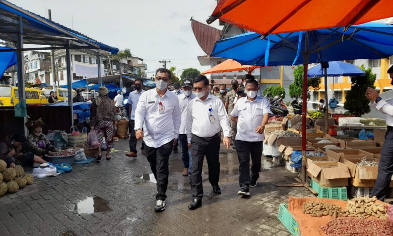 SINDEKA.id – Guna menjaga kestabilan harga bahan pokok jelang lebaran Idul Fitri 1443 H tahun ini, sekretaris kabupaten Dairi Budianta Pinem bersama Unsur Forkopimda, dalam hal ini Wakapolres Dairi, Denni Boi Panggabean, Kadis Perhubungan, Kasatpol PP, Dirut PD Pasar serta pihak terkait memantau harga dan ketersediaan bahan pokok di Pusat Pasar Sidikalang, Rabu (27/04/2022).
