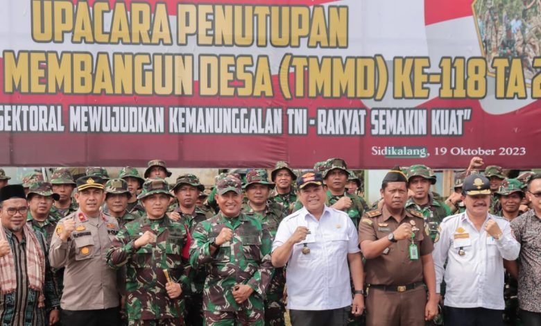 SINDEKA.id – Bupati Dairi Dr.Eddy Keleng Ate Berutu menghadiri apel penutupan TNI Manunggal Membangun Desa (TMMD) ke – 118 yang digelar di halaman sekolah SD Juma Borno, Dusun Borno, Desa Sungai Raya, Kecamatan Siempat Nempu, Kamis (19/10/2023).